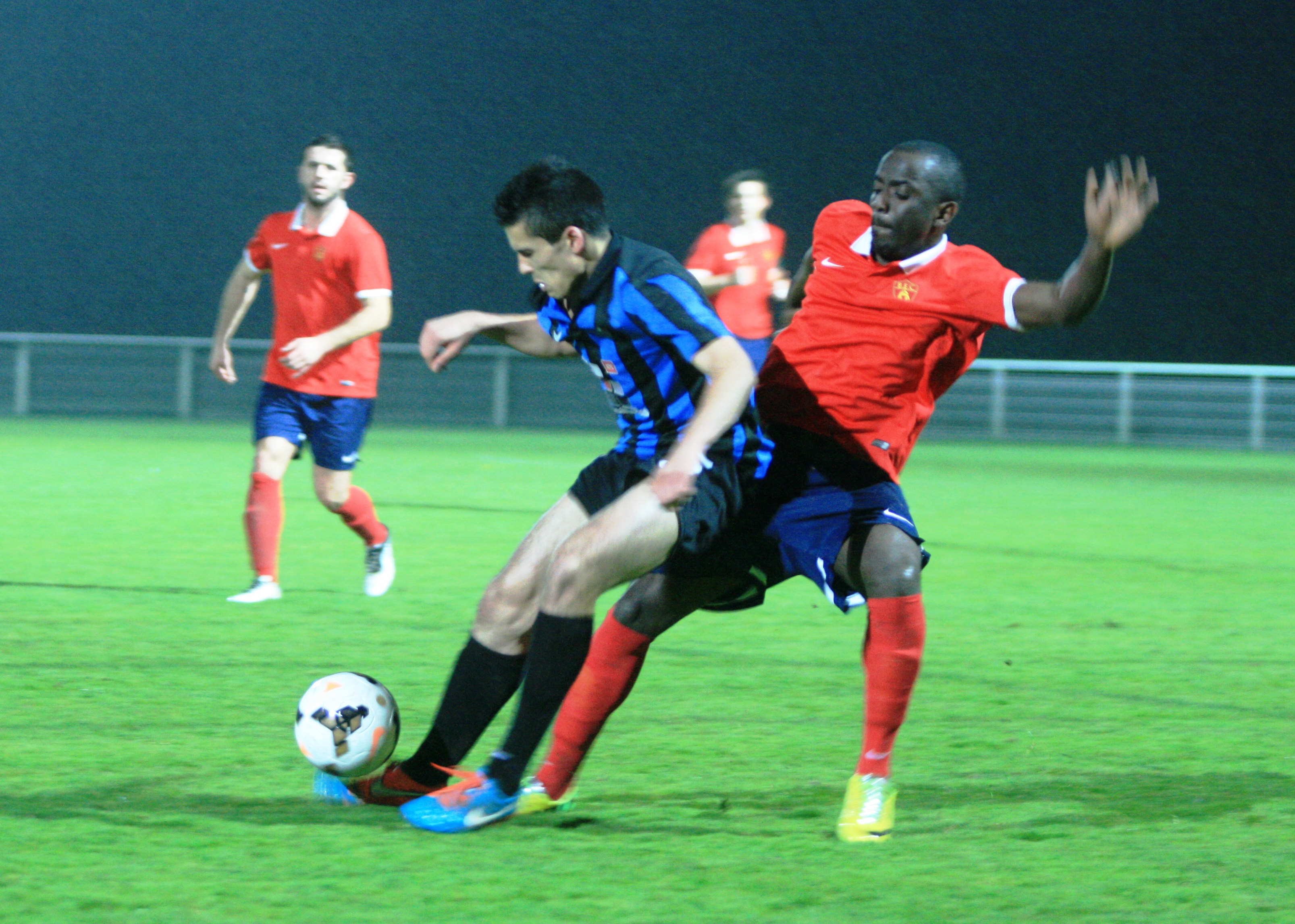 LE MATCH Sur l'ensemble de la partie, le BEC peut avoir quelques regrets, et notamment sur deux périodes précises. La première : dominateurs durant les 35 première minutes, impulsant la cadence, les petits rouges se sont approchés plusieurs fois du but villenavais sans malheureusement pouvoir prendre la marque. D'abord une belle occasion pour Mouss Cissé sur un centre d'Astia venant de la gauche (18e). Un poil trop court. Puis, Mika Beaussant lancé dans le dos de la défense, qui précipite trop son tir pour toucher le petit filet (26e). Le rythme insaturé par les Bécistes est difficile à tenir. La bataille au milieu du terrain est une partie d'échec. Derrière, la garde rouge tient le choc avec Hendy replacé côté gauche. Le match est agréable, pétris de gestes techniques de qualité. En face, Villenave n'a rien d'une PH : plusieurs joueurs ont connu des feuilles de matches en CFA2 cette saison, à l'image du très bon numéro 10 Axel Laé : 11 matches en CFA2 pour 2014/2015 (dont 8 titularisations) et 19 l'an dernier en CFA. On peut aussi évoquer le 14 Madvy Kiemba (6 matches en CFA2) ou le numéro 2 Julio Barrabes (5 matches en CFA2). Rajoutons deux trois petits prodiges des 19 nationaux et on se retrouve dans une belle lessiveuse. Bref, tout sauf une équipe d'enfants de choeur.