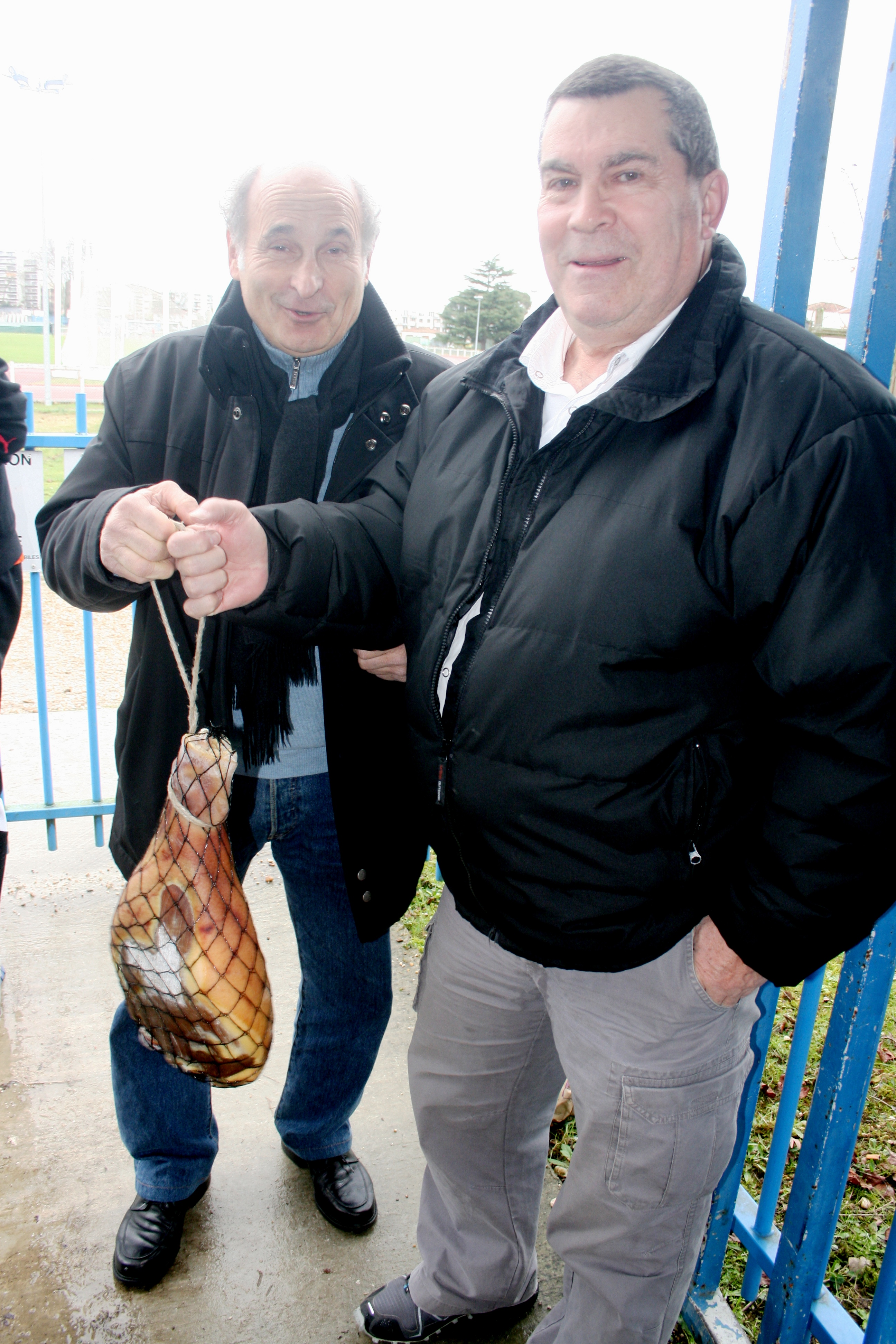 Les deux grands anciens Gilles et Michel soupèsent le jambon. C'est Lolo Chabaud qui va l'emporter ! @EricBecquet